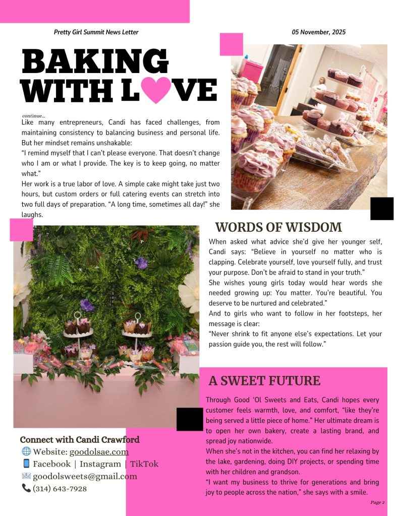 Out of this conviction, Starr founded the Pretty Girl Summit, a movement designed to inspire girls to embrace their brilliance, step into confidence, and boldly pursue their dreams. Through mentorship, workshops, and community connection, she is committed to showing every young woman that she has value, purpose, and the strength to thrive.